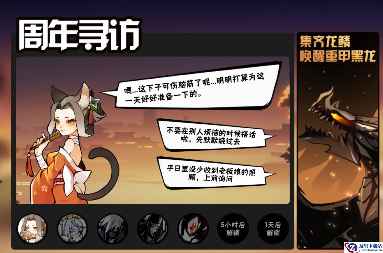 另外,从8月15日开始的“周年寻访”,只要满足寻访的NPC的小心愿,也可以获得庆典币奖励。而且,在周年寻访中还可以获得黑龙重甲碎片,只要集齐7个就可以激活首次出现的通灵兽皮肤——重甲·黑龙哦!