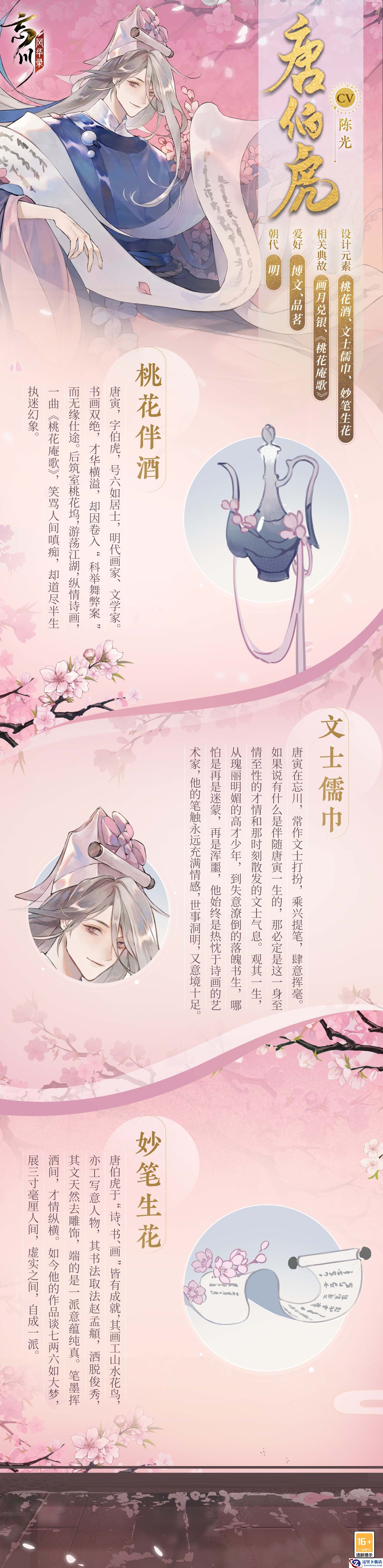 我有桃源,故人万千!《忘川风华录》全新天品名士【唐伯虎】即将入住忘川,全新版本【妙笔生花】即将风华上线!各位玩家“使君”快快下载游戏,与千古名士共居桃源吧!了解更多活动信息,请关注官方自媒体(官方微信公众号、微博@忘川风华录手游)后续新闻。