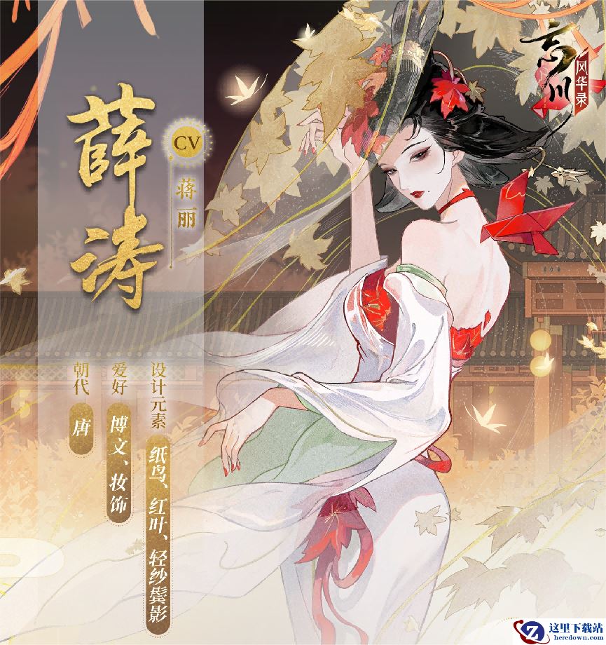 来到忘川后,薛涛仍不改对红色的热爱,随身携带纸笺,每有灵感都可以信笔写下,与其他名士相唱和,而写有诗句的纸笺也将化为纸鸟,在薛涛身旁盘旋,传唱寄托于诗中的深厚情谊。