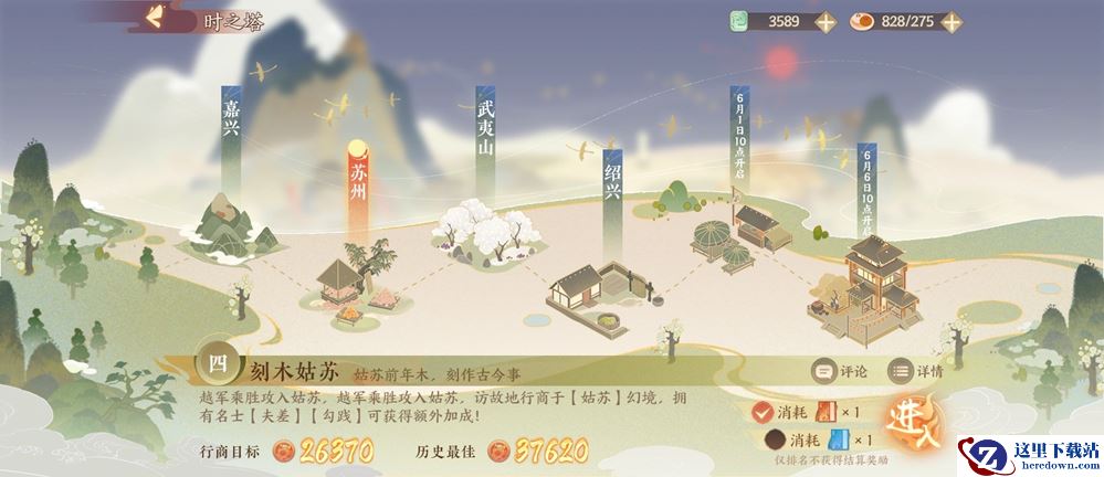 行商春秋玩法分为6个关卡,均以嘉兴、苏州、武夷山等东南地区著名的商业城市命名。关卡随时间推进而开放,核心玩法一致,但在路线长度、商品种类、机制复杂度等方面逐渐增加,闯关的难度和奖励也将水涨船高,使君们只需按部就班,就能逐步掌握经商要领。