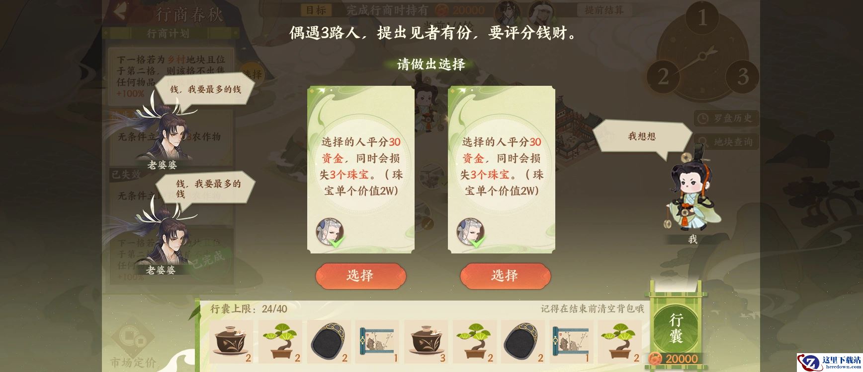 贱取贵出的经商理论虽然简洁明了,但在操作层面却并不容易掌握。使君所拥有的金钱和行囊可容纳的货物数量都是有限的,而前方的商机却是未知的,在当前地块大量买入的低价商品,如果长时间无法以合适的价格售出,则会直接影响到财富的积累。若是在抵达目标点/终点时所持金钱未能达到要求,则会被判失败,只得重振旗鼓,再接再厉。