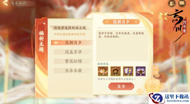 玩家“使君”每日点击发布福祁,可选择想要的心愿主题或者亲自编辑心愿。每日将在本服所有参与福祁的玩家“使君”中挑选十名作为福曜锦鲤,可获取神秘奖励!锦鲤名单将于次日6:00公布。此外,忘川名士们也会参与许愿,玩家“使君”可点击查看名士心愿!
