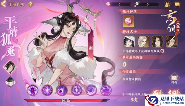玩家“使君”可选择单人或组队参与平靖狐魇挑战,每日有3次挑战机会,将取最好的一次成绩作为今日成绩计入每日排行榜和累计排行榜。每次挑战回合上限仅10回合,若中途撤退,只按照撤退时的伤害值进行结算。挑战时,荆在第2回合苏醒,玩家“使君”需要根据狐影和狐踪的提示,将它们转化为正确的状态,破除幻境!每日6点根据每日排行发放每日奖励;活动结束后,根据累计排行榜发放相应奖励!