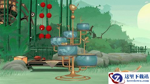 忘川名士喜好音律,便也精心为猫咪们打造排鼓。每当猫咪在鼓上嬉闹,排鼓便发出不同的声音,穿梭在桂枝间的猫咪化身成为踏月的仙兔。