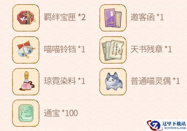 玩家“使君”每日输入密令签到即可领取铜币*5000,并随机获得羁绊宝匣*2、邀客函*1、喵喵铃铛*1、天书残章*1、琼霓染料*1、普通喵灵偶*1、通宝*100。
