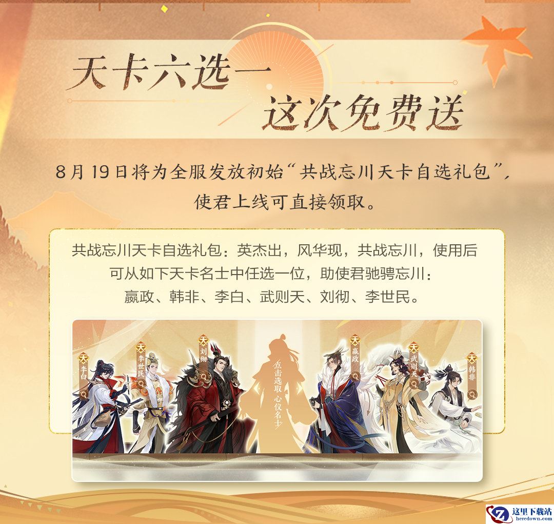活动期间,在【虎啸震江东】卡池内,天品名士·孙策与地品名士·范蠡获取概率提升,在【烽火连赤壁】卡池内,天品名士·周瑜与地品名士·刘邦获取概率提升!