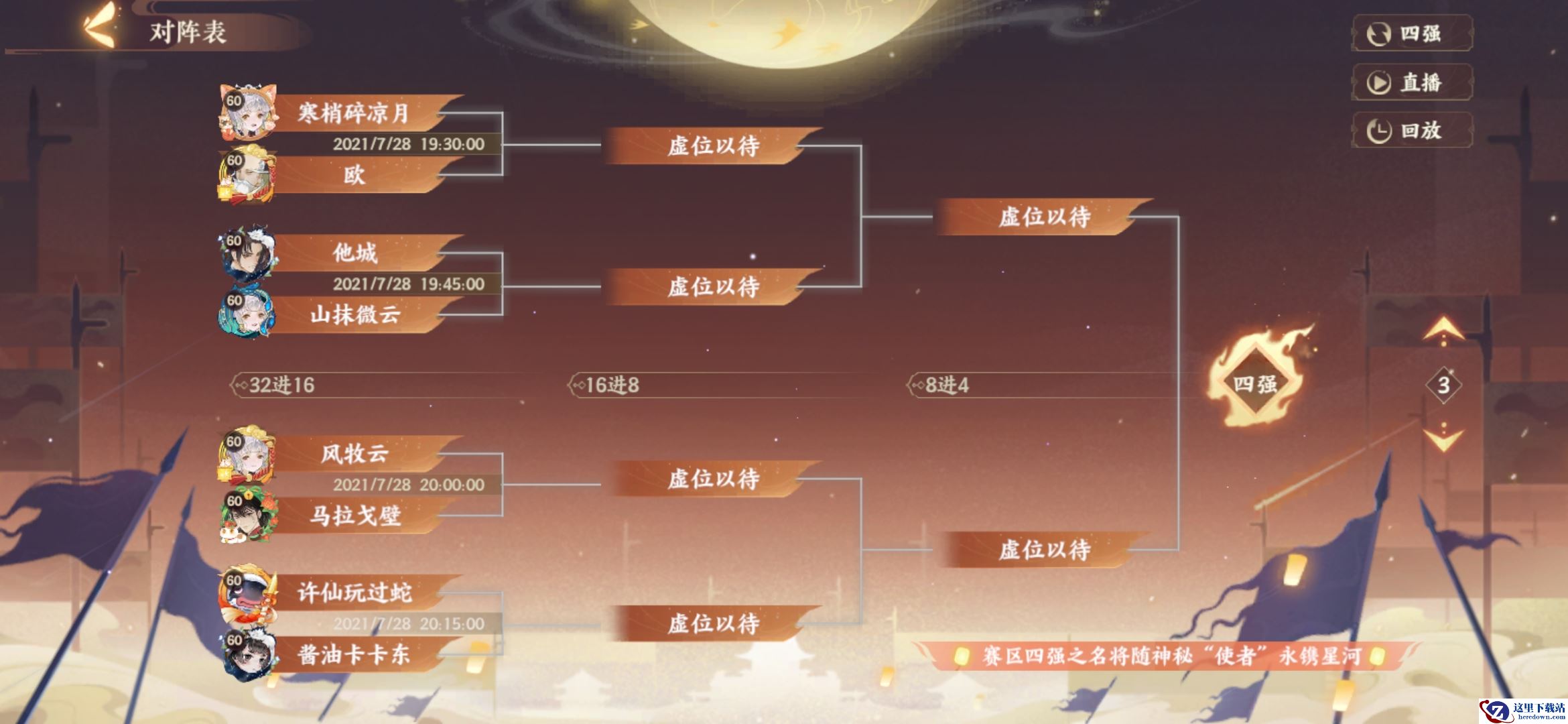 4号赛区:如见青山、洛阳怀、祝融神火、高山流水