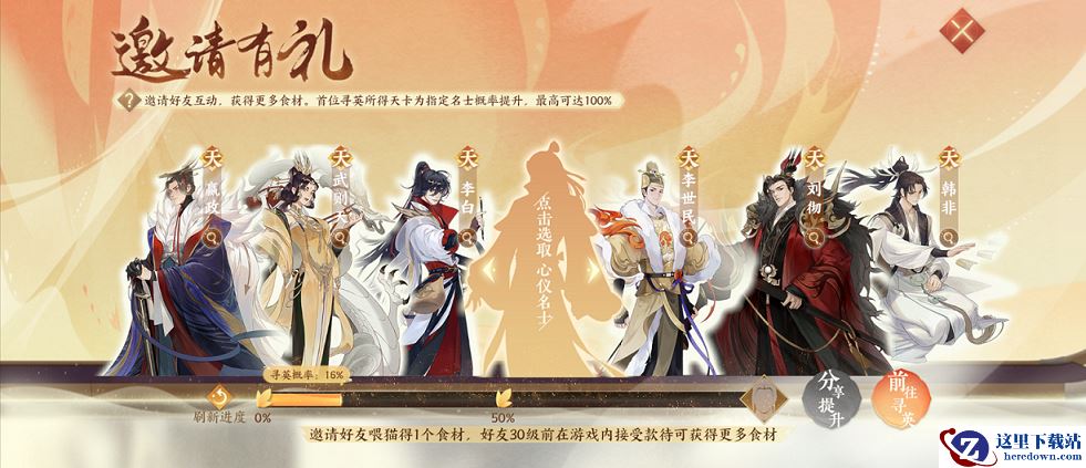 天卡UP六选一,爆率提升助成长!公测福利重磅追加,在新手卡池前30抽必出天卡的基础上,玩家“使君”可在李白等六位名士中选择任意心仪名士,新手卡池中该名士获取概率立达100%!在公测开启首周,三个副本(宝墟、镜渊、故世风云)的掉率均将额外提升50%,帮忙玩家“使君”加速成长。