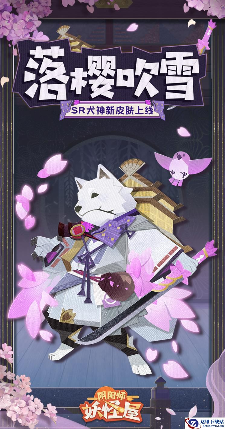 「犬神·落樱吹雪」皮肤将于1月20日维护更新后上架皮肤商店,上架首周可享限时折扣,心动的家主不如趁着打折为犬神换上这美丽的冬日新装~