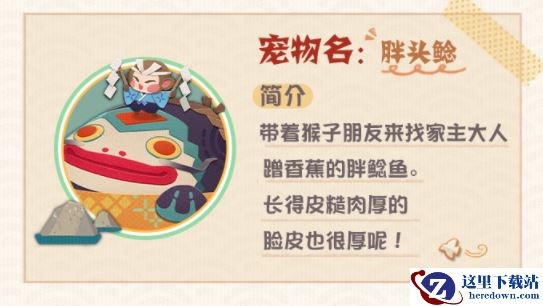 前往妖怪屋海边,找到胖头鲶。使用出海后收获的“香蕉”道具,帮助胖头鲶将出走的小猴子哄回来,即可收获宠物——胖头鲶!