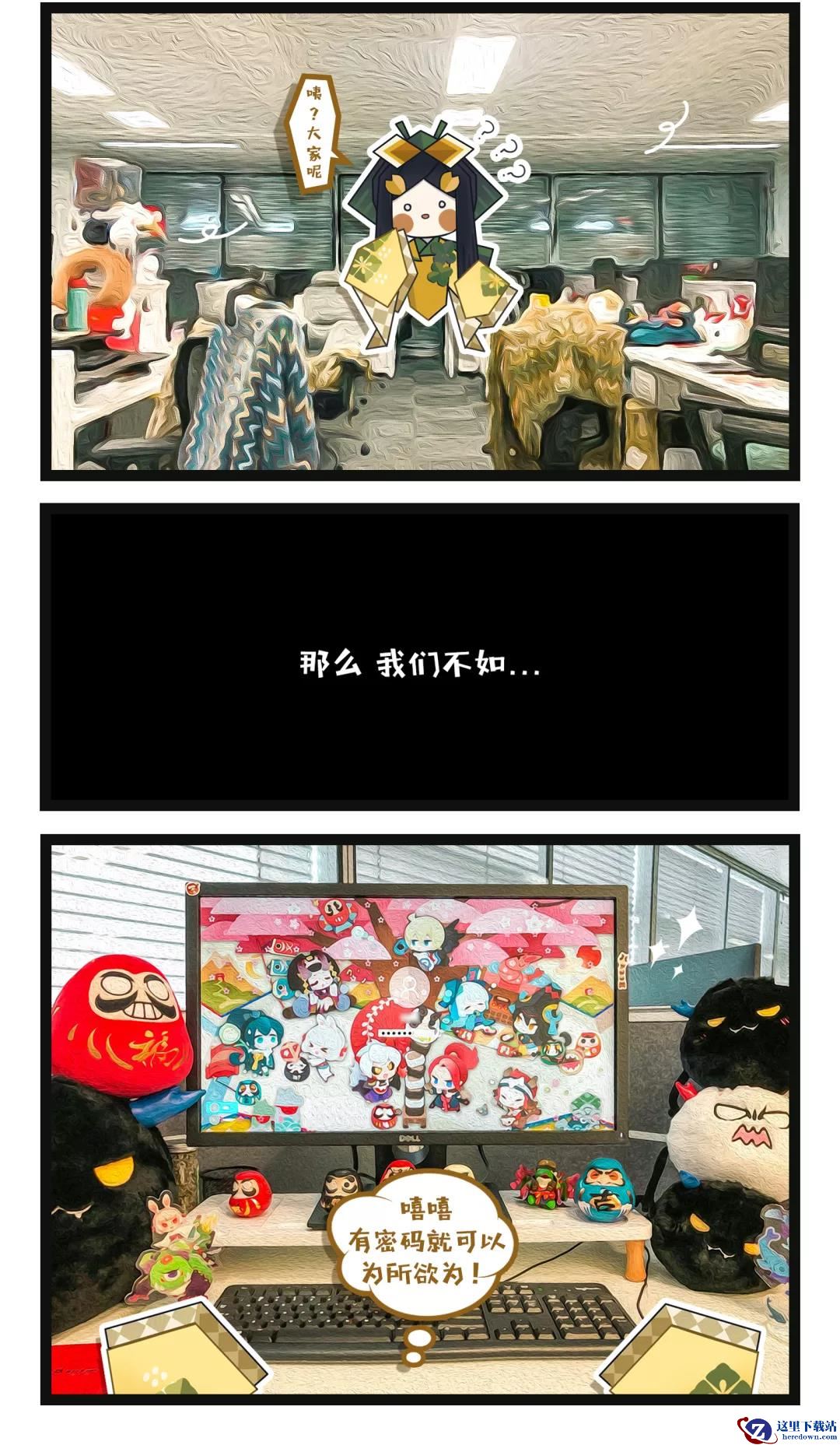 原来在美术组摸鱼的卡米酱,看似在为大家服务,却在大家不在的时间趁机进入组员的电脑桌面,到底美术组资料在哪呢?但是密码在手,想必素材也不会远了。说不定其中还有关于安卓计费测试的秘密,让我们一起来期待接下来的爆料实况转播吧。