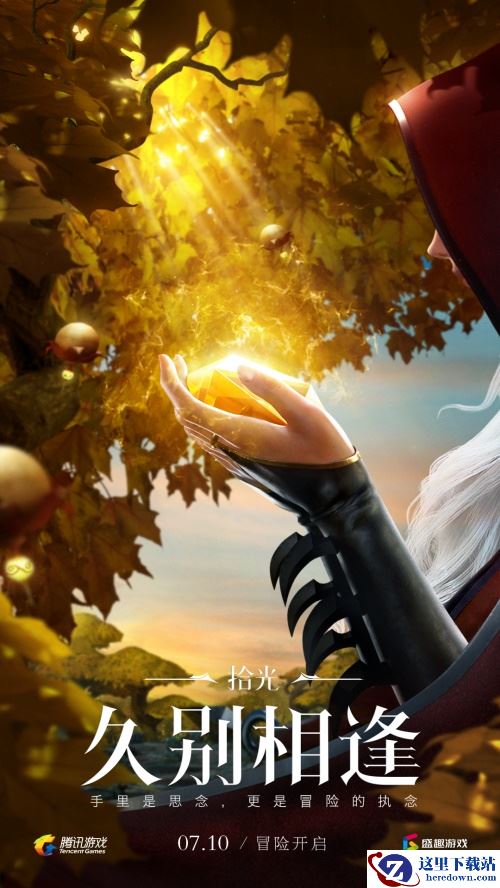 第二张曝光的主题为“拾光·久别重逢”的悬念海报,海报中虚化的背景是一片郁郁葱葱的丛林,海报中央有一位仅露出侧脸鼻尖,周身披红色斗篷,拥有着银色长发的女性手捧金色宝石,宝石被树木所散发的金色光芒笼罩,树上还有一颗颗坠着明灯的果实。这些标志性的特征都直指《龙之谷》的主线人物银龙阿尔杰塔,这样一来她手上的金色宝石可能就是葬身于海龙萨芬特拉利爪之下的哥哥杰兰特的金龙宝玉。