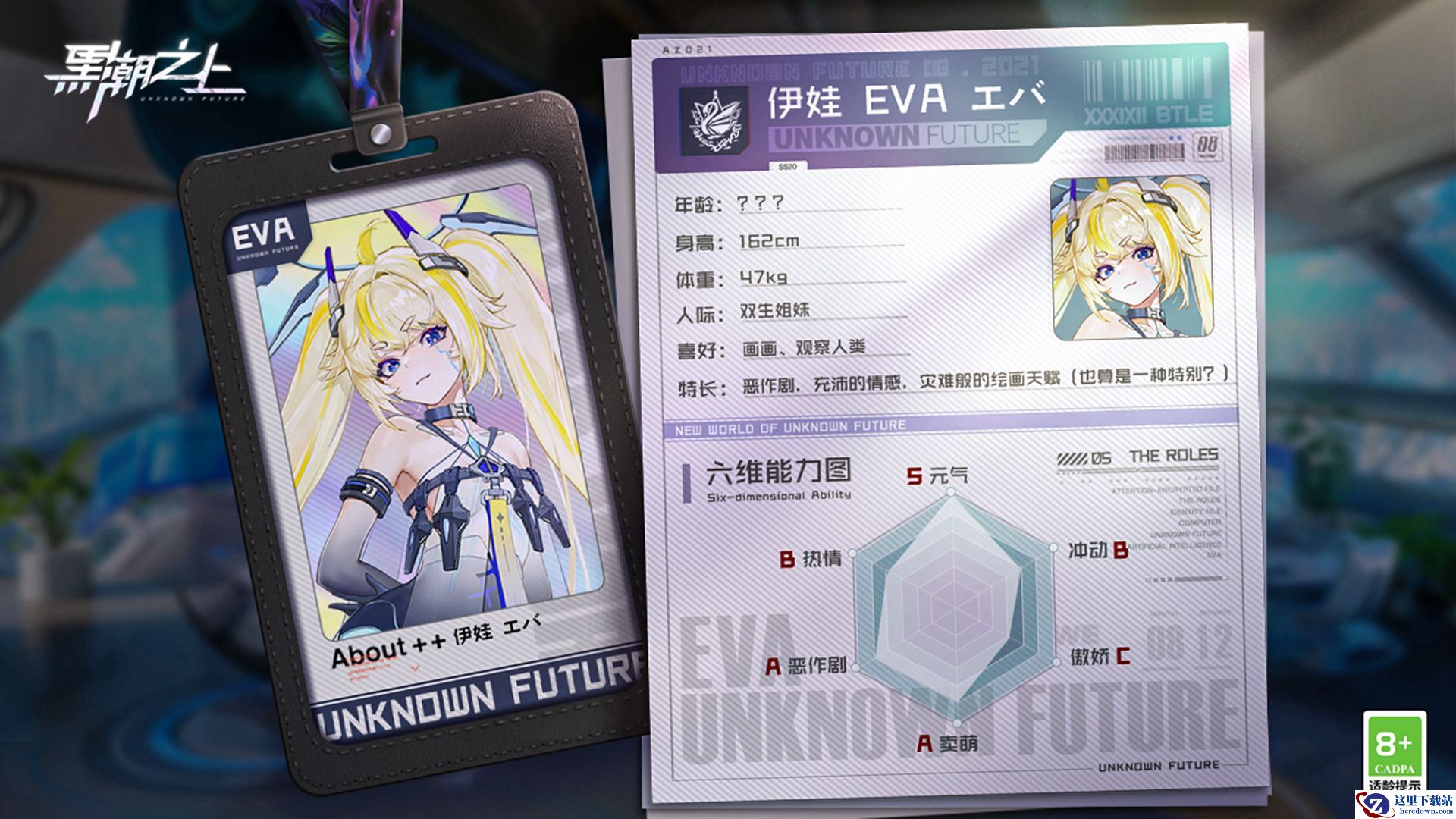 《黑潮之上》新世界少女「伊娃」情报公开!她是连接着神秘主脑的AI发言人,知晓很多不得了的秘闻,当然她还有很多离谱才艺:画起画来人鬼共泣,卖起萌来惊为天人,恶作剧简直是看家本领,是元气值超S的小恶魔AI无疑!不过,「伊娃」最大的爱好还是观察人类——明明是AI,却像人类一样会喜怒哀乐,这到底是真实的情绪,还是代码的模拟?……无论如何,新世界人形少女「伊娃」,开始执行全新使命!