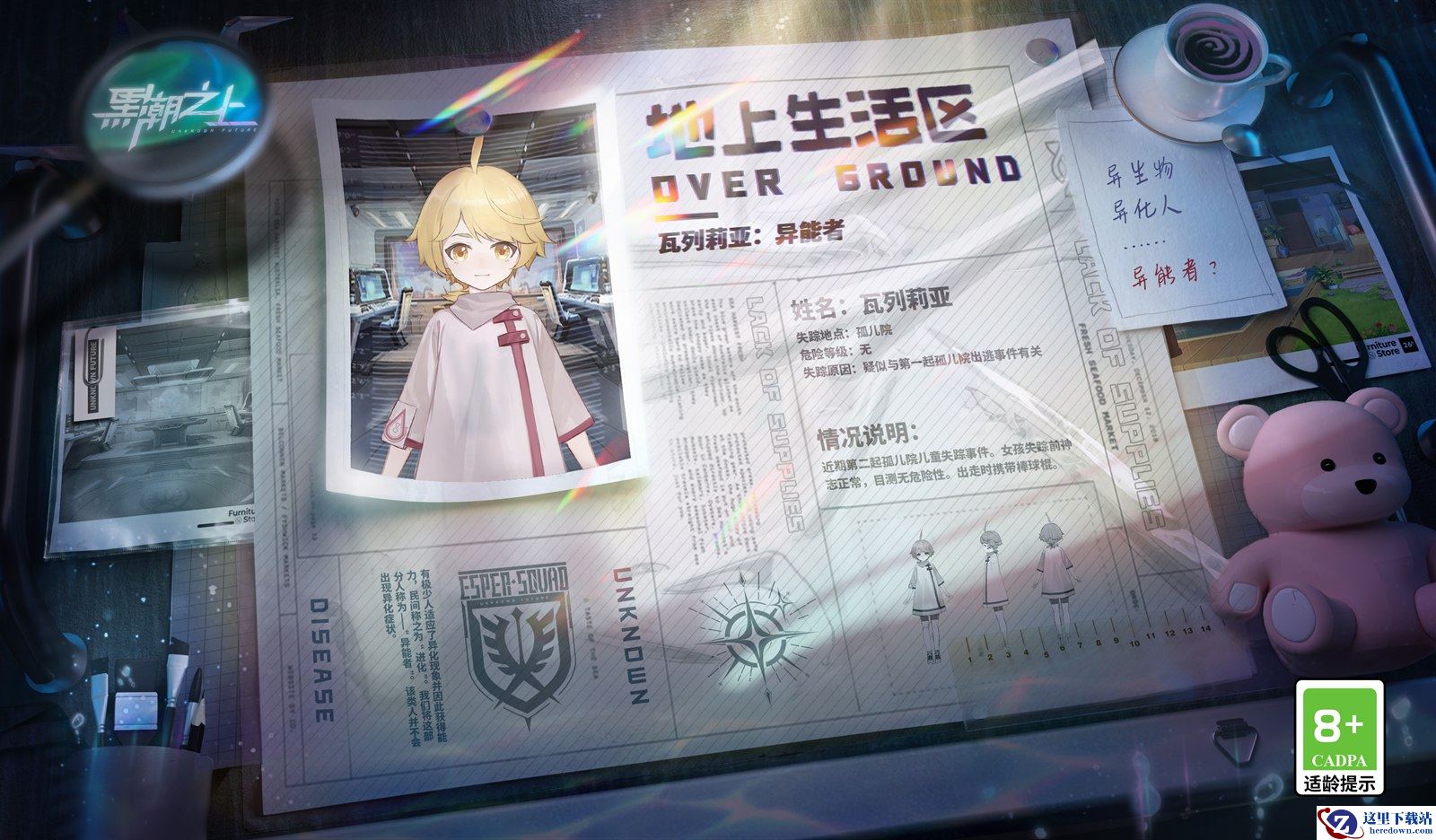 棒球女孩瓦列莉亚登场新世界!金发呆毛,一身宽大的白底勾边制服,心爱的球棒从不离手,看起来永远那么精力充沛!毫无异化症状的瓦列莉亚突然离奇出走,孤儿院儿童失踪事件再添悬案!她的出走和第一起失踪案究竟有何关联?不受异化影响的「异能者」似乎也已出现,找到她,是否能找到拯救世界的关键?