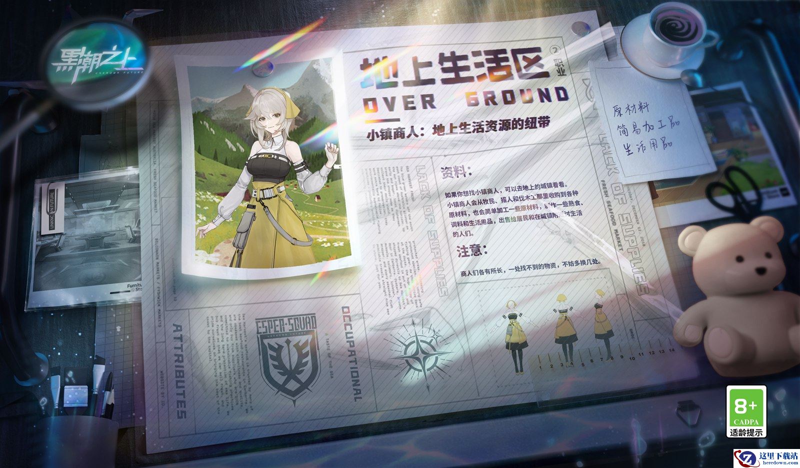 《黑潮之上》新世界全新NPC曝光!作为地上生活资源的重要纽带,「小镇商人」将出没于地上的城镇区域:头巾、袖套,一身利落的束腰裙,腰上还挂着灵巧的小袋,锁定她们的身影,冒险物资无忧!原材料、简易加工品、生活用品……无论你想要什么,这里应有尽有!在关键时刻,她们也许能助你一臂之力~