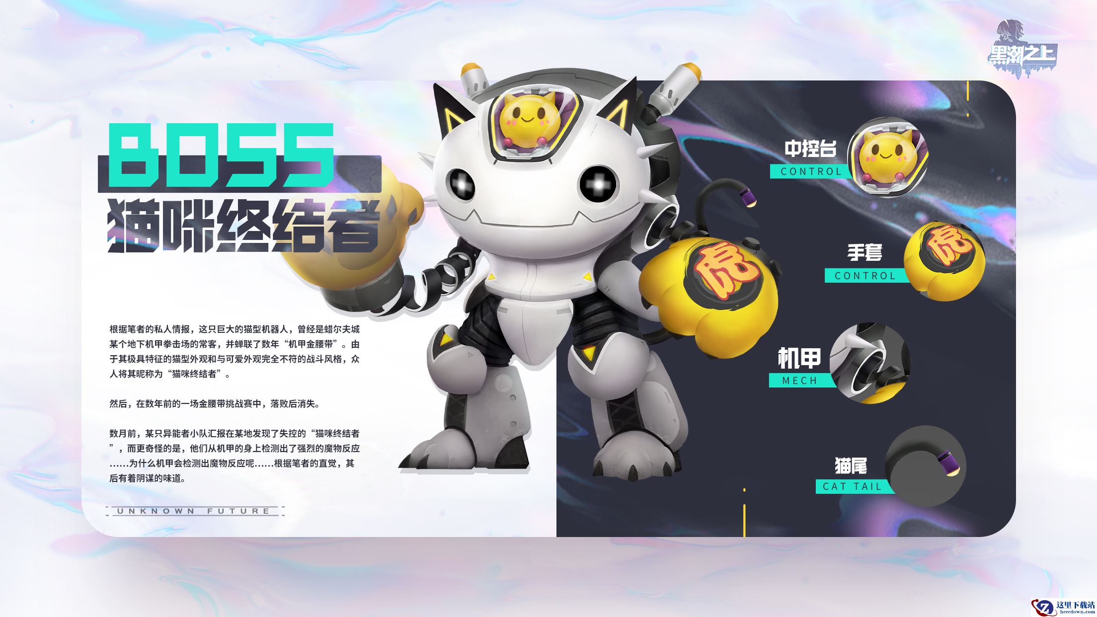 虽然关于地下机甲拳击的故事到这里就结束了,但……是的,它居然出现在魔物研究中心的魔物图鉴上,说明它一定存在一些问题。数个月前,某只异能者小队汇报在某地发现了失控的“猫咪终结者”,而更奇怪的是,他们从机甲的身上检测出了强烈的魔物反应……为什么机甲会检测出魔物反应呢……我想,其后必然有着阴谋的存在。