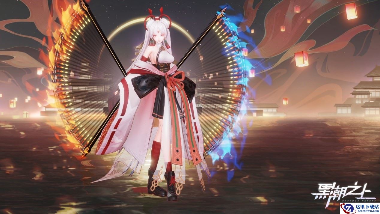 腰际的蝴蝶结与纱衣边缘的花纹呈现火焰般的绯红……少女持扇,荧三千灯火,为君烛照此夜!