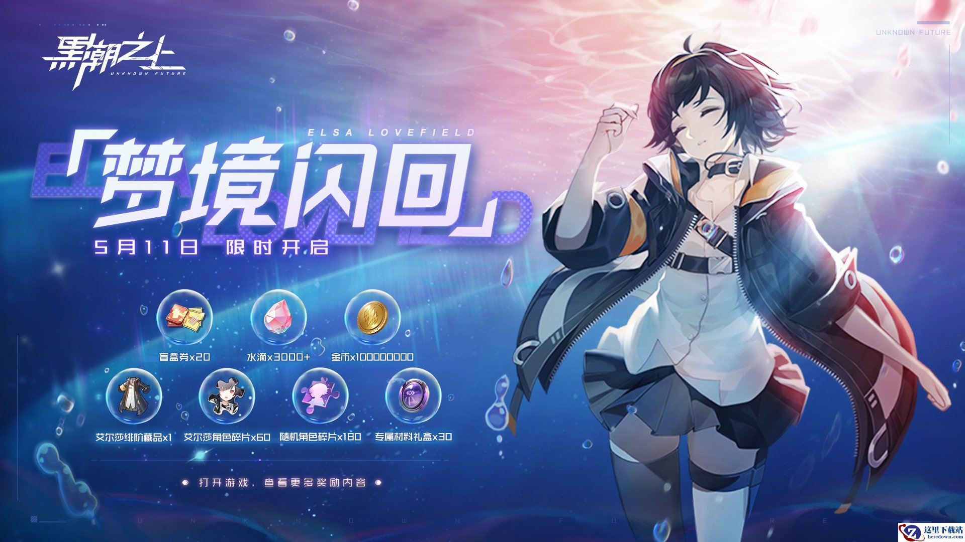 梦境再临,好事成双!即日起至6月1日,《黑潮之上》「梦境闪回」特别活动火热进行中!上线参加活动,即有机会赢取「艾尔莎绯阶藏品」、「艾尔莎角色碎片」、「祈愿券」等丰厚奖励! 5月15日至5月20日,《黑潮之上》战斗少女伊芙生日庆典活动盛大开启,累计签到三日就能领走稀有小姐姐伊芙!这个五月,携手战斗少女一起开启盛大夏日冒险!