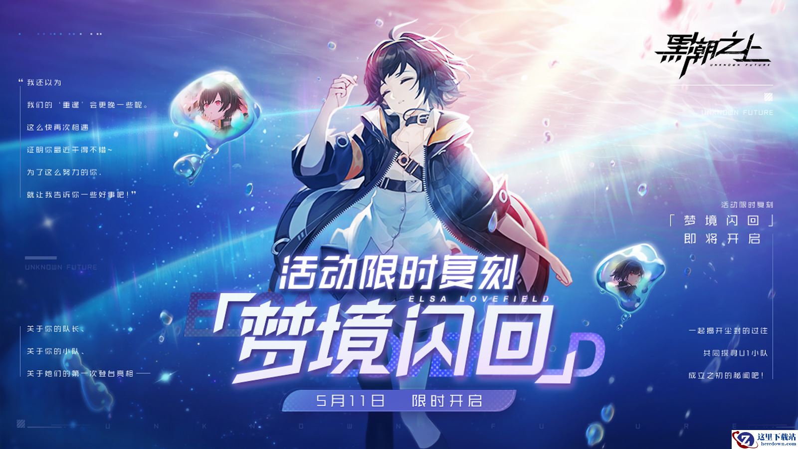 记忆闪回,梦境再临!5月11日至6月8日,都市异能战斗女团手游《黑潮之上》将惊喜重启特别玩法「梦境闪回」!按照各位接触者的反馈,本轮活动特别进行了难度调整!准时上线参与活动,更可赢取「艾尔莎绯阶藏品」、「祈愿券」等惊喜奖励,解锁艾尔莎更高战力!一起进入梦境彼端,回到旅途的起点,共同探寻U1小队成立之初的秘闻吧!