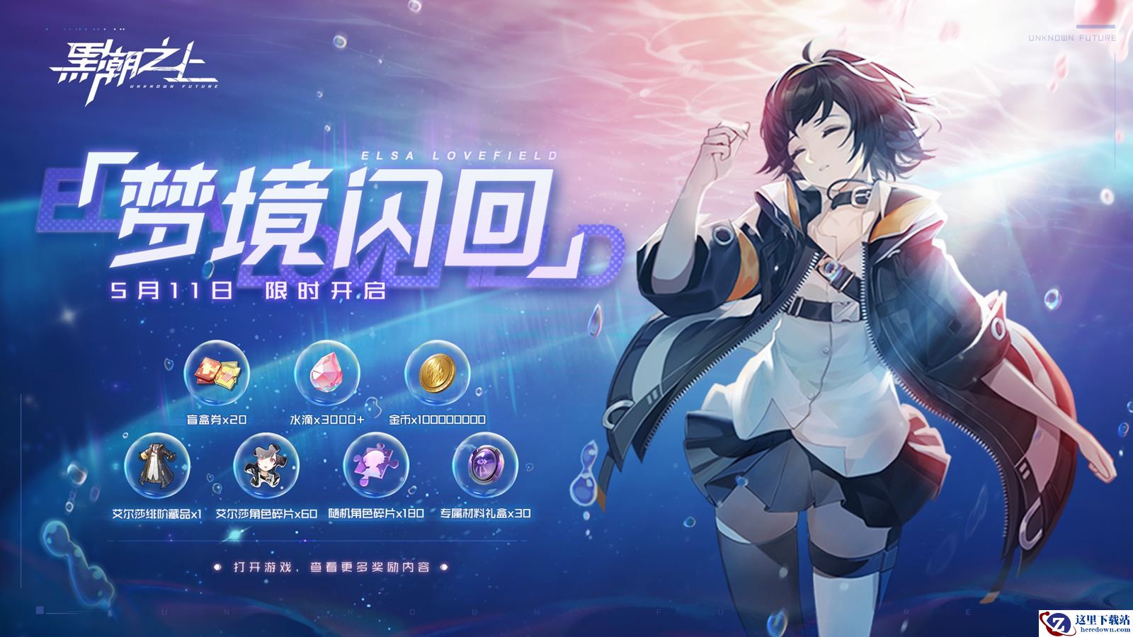 5月11日至6月1日,《黑潮之上》特别玩法「梦境闪回」限时重启!接触者将进入梦境彼端,揭开U1小队成立之初的隐秘过往!参与活动完成任务,即可获取「艾尔莎角色碎片」、「水滴」、「梦境露珠」等多种任务奖励!接触者还可通过「梦境露珠」在商店兑换「艾尔莎专属绯阶藏品」、「专属材料礼盒」、「盲盒券」等各类稀有物资,助力艾尔莎解锁更强战力!