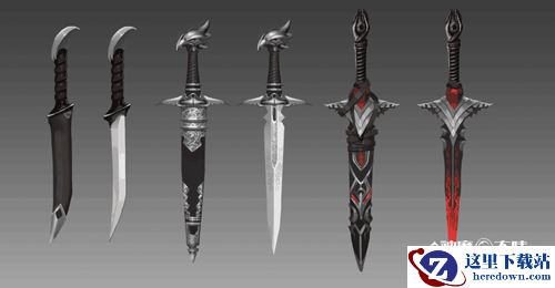 在设计武器时,糅合一部分皇室浪漫、骑士英雄主义和血腥残暴的感性化需求,在职业武器的刻画上又参考职业定位,做出一定的延展。