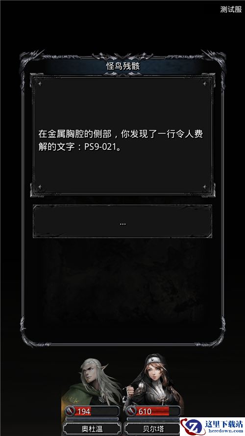 如果你四处逛逛,就可以开启这款游戏的第一个彩蛋,了解这只怪鸟的身世!其实它是一只机械怪鸟,使用不明金属锻造而成。而以地下城堡世界的科技,目前根本没可能制造出这样剪短的机械。仔细搜索,我们还会发现刻印在它骨骼上的代码:PS9-021