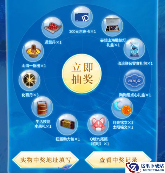 本次奖池设置了11种不同等级的奖品,既有200元京东卡、妄想山海雕刻灯礼盒、洽洽联名零食礼包、陶陶居点心礼盒这样的实体礼物,还有月亮/太阳铭文、扭蛋助力包、Q版九尾狐临时卡等养成资源奖品,可以说是超级丰富了。(PS:之前很多旅者反馈想要的妄想山海雕刻灯周边、陶陶居零食礼盒,妄妄也成功为大家争取到返场了哦~)