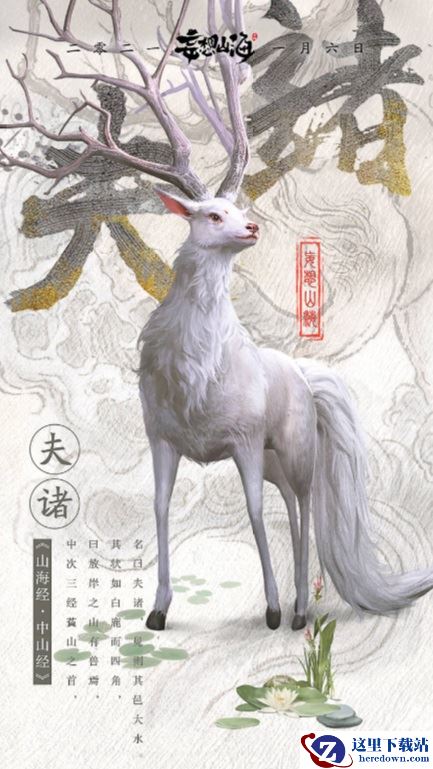 《山海经·中山经》:“中次三经萯山之首,曰敖岸之山,其阳多㻬琈之玉,其阴多赭、黄金。神熏池居之。是常出美玉。北望河林,其状如蒨如举。有兽焉,其状如白鹿而四角,名曰夫诸,见则其邑大水。夫诸是中国古代神话传说中的神兽之一,夫诸一种长着四只角的鹿,它的情状似温柔洁净,喜欢四处角戏。它常年生活在一个遍布黄金,矿藏,美玉,优美富饶之地。
