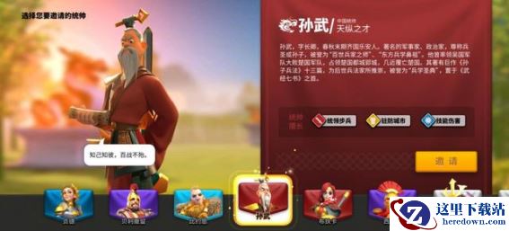 而中式文明的初始统帅是孙武,也就是创作了《孙子兵法》的那位兵家至圣,当年他率领吴国军队大败楚国,险些将楚国灭亡,因此在《万国觉醒》中,他擅长统领步兵(春秋时期多为步兵)、驻防城市。除此之外,《万国觉醒》还对孙武的故事进行了介绍,在这游戏里学历史都没有问题!