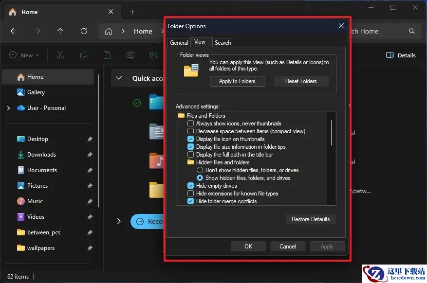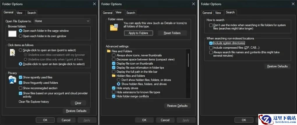 本次更新最受关注的改进,是微软进一步扩大文件资源管理器(File Explorer)的深色模式覆盖范围。“文件夹选项”对话框及其所有子标签页此前在深色模式下仍显示为白色,破坏了视觉统一性。