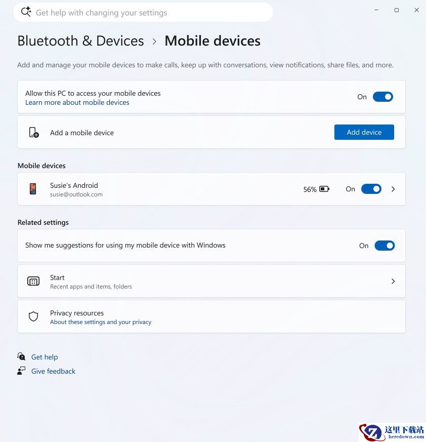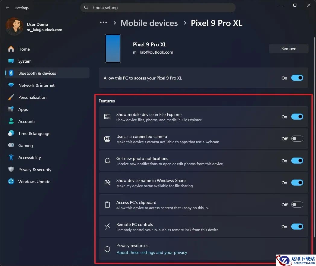 以往连接和管理手机需要跳转到一个独立的页面,而现在所有相关选项都被整合进了“设置 > 蓝牙和设备 > 移动设备”页面内,操作路径更短。