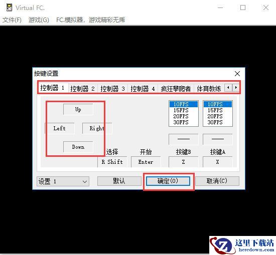 自定义按键: 在输入配置界面中,你可以看到 FC 游戏机的各个按键,例如 Up、Down、Left、Right、A、B、Select 和 Start。