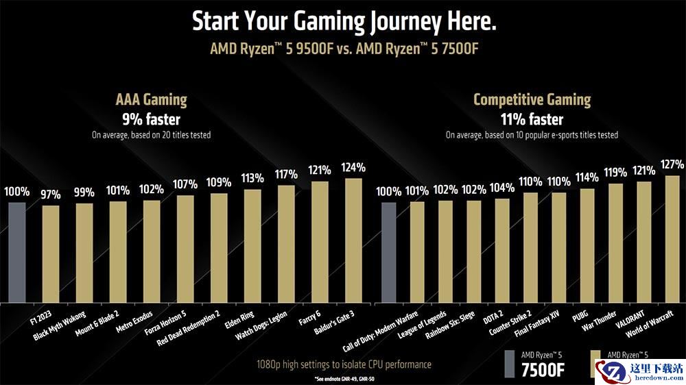 虽然官方称Ryzen5 9500F在高负载游戏中能够有更显著的提升,但在实测中,两款处理器的表现几乎不分伯仲,特别是当搭配中端的显卡时,CPU性能的差异更是微乎其微。