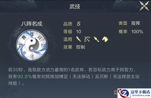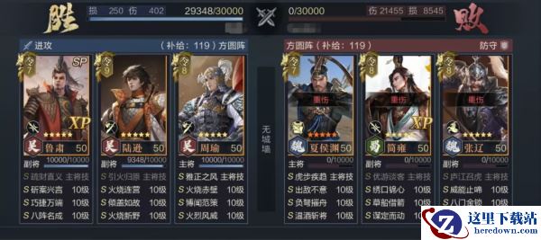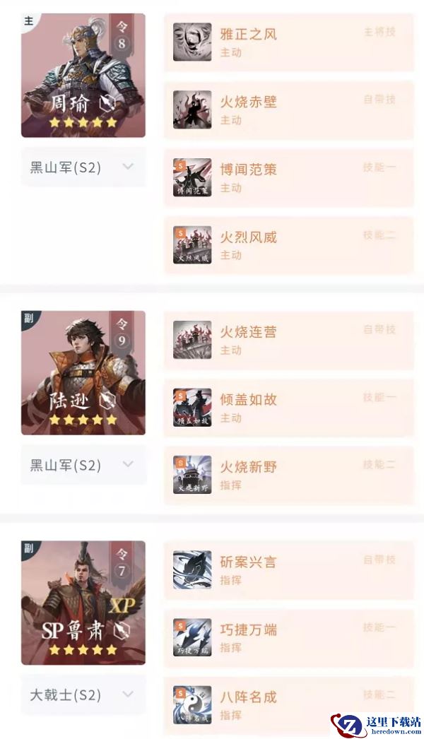 该体系中仍然需要周瑜主将技的前置焚烧,所以SP鲁肃的定位为辅助,推荐巧捷万端+八阵名成,前者配合队内高频的主动技能释放叠加增伤并对敌减伤,后者保证己方开场优势,可以根据PVP环境更换为画地为牢、空城计等控场技能。