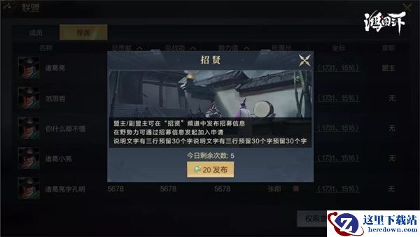 备战区功能上线,开启跨服组队大时代,全面实现玩家的剧本选择自由!热爱三国征战,想挑战自己策略极限的玩家们,赶快行动起来,招兵买马在《鸿图之下》更辽阔的战场上征服一切挑战!