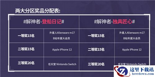 #感恩有你# 视频征集活动的百万奖励包括一等奖30台外星人笔记本,二等奖30台新出的Apple iPhone12,三等奖40台任天堂Nintendo Switch。三大奖品均平分到#解神者-登船日记# #解神者-独具匠心#两大分区。干货满满的游戏攻略、咨兽主搭配建议,又或者是展现个人创作能力的MMD、手书等内容,都可选择对应分区参与活动。