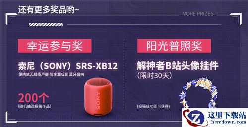 除了上述的三大“实力”奖项,《解神者》还贴心的给参与的玩家准备了幸运参与奖和阳光普照奖。200份索尼蓝牙音响,从所有投稿的玩家中随机抽奖,每个人的中奖几率都一样。而阳光普照奖所有投稿成功的人均可以获得,超萌超可爱的解神者专属B站头像挂件。