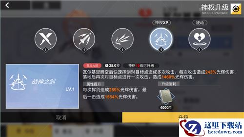 瓦尔基里回屋长剑对敌人造成光辉伤害,最后一段会击飞所有敌人。