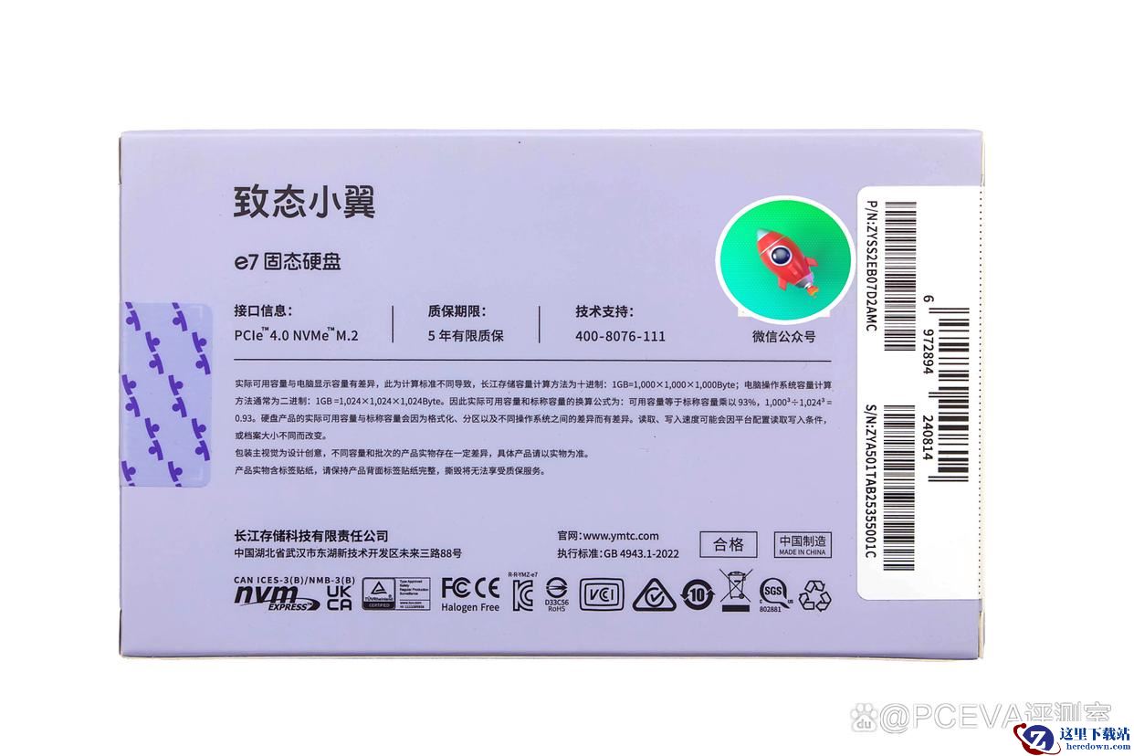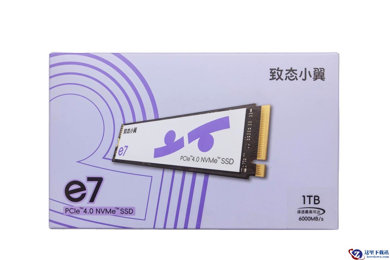 致态小翼首批推出致态小翼e7(PCIe 4.0 NVMe)和致态小翼S001(SATA 6Gps)两款型号,本次我们评测的是致态小翼e7 1TB版本。