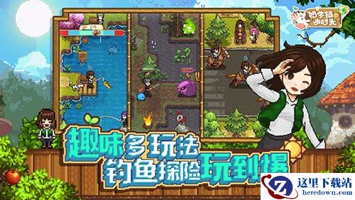 在奶牛镇的小世界的各个水域中,有数不清的河鱼海鲜,管你吃个够。不同的水域拥有不同的鱼类,上手的难易度也不同,想轻松点,可以去农场的小溪或是小镇的池塘,想挑战一下,那就去南部海洋和东部仙山上的神池。在小镇的西边,一片荒野的澡泽地上有数不清的怪物与宝藏,欢迎各位勇士前去挑战。别忘了马场老板苗七赛马比赛,要是能在马场上一举夺冠,可是有不少奖励哟。