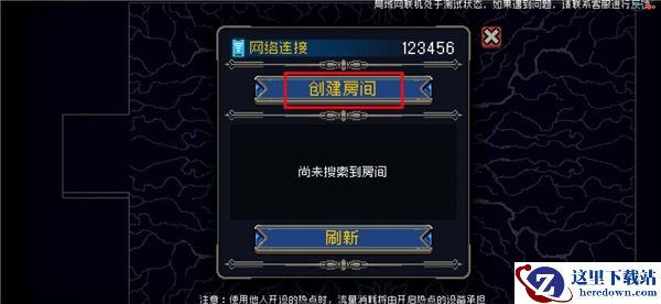 创建房间页面可以设置包括房间名字等在内的多个选项,确定后即可在“联机”页面看到已有的房间,进入房间可以查看虚拟局域网房间内的成员,点击“马上联机”按钮即与房间内的成员联机成功。
