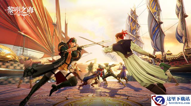 与传统MMO手游不同,玩家在《黎明之海》内的战斗体验是多维度的,你能在陆地上与敌人短兵相接,使用华丽的剑术,阻止里斯本商业中心的酒馆械斗,惩戒在瓦伦西亚逍遥法外的盗贼狂徒,甚至还能与海盗女王伊丽莎白一世并肩作战,对抗西班牙士兵成为新的七海霸主;也可以与迪亚士一同出海,沿着非洲西海岸一路向南,与索马里海盗在炮火间周旋,开辟一条通往印度的新航路。