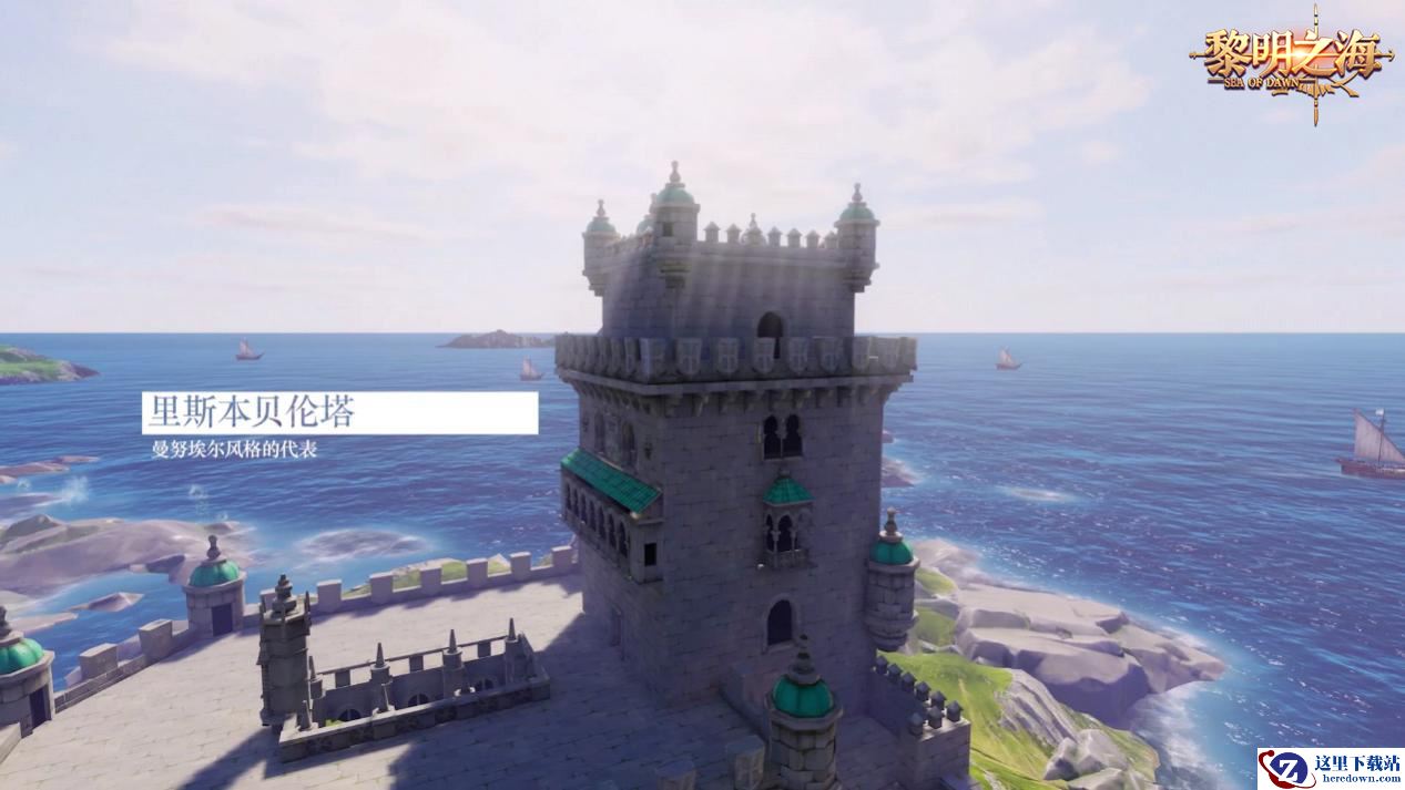 《黎明之海》游戏里的贝伦塔能够让冒险家们直观体会到曼努埃尔风格的魅力,还原的扭转造型的圆柱、国王纹章、雕饰精细繁复的窗框,华美而又大气,瞬间便能将玩家带回到那个风云激荡的年代,在血与火的时代中追逐财富与梦想吧!