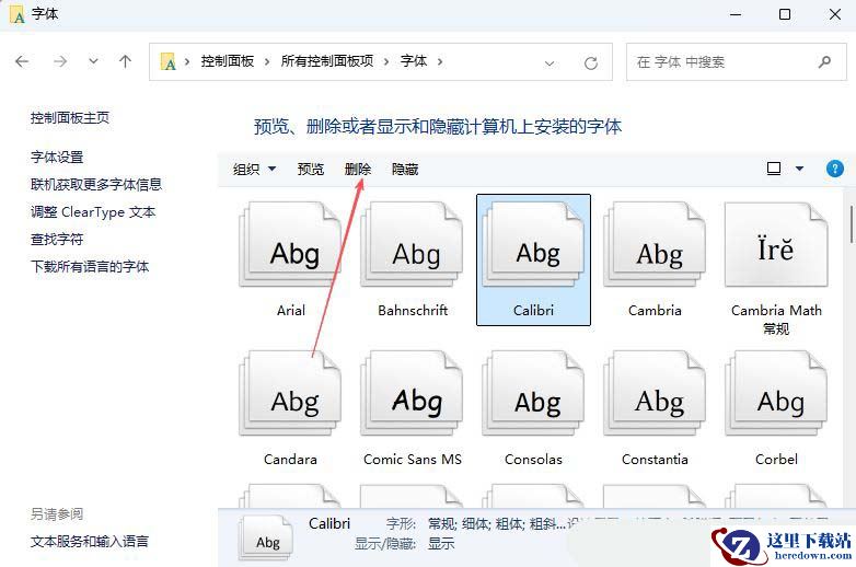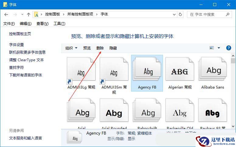 4、最后,选择好所需要删除的字体后,点击上面的“删除”即可。