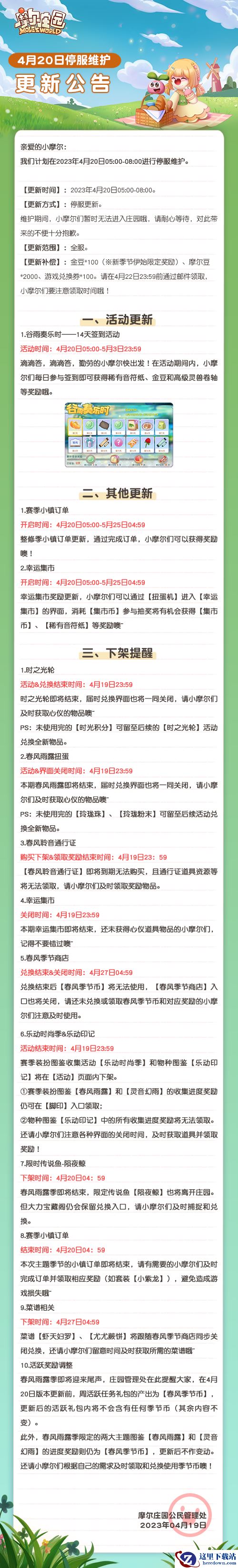 今天是谷雨节气,降水增加,小摩尔们出门要记得带上雨具哦~ 庄园已于4月20日5:00-8:00进行停服更新,一起来看看本周更新内容吧!