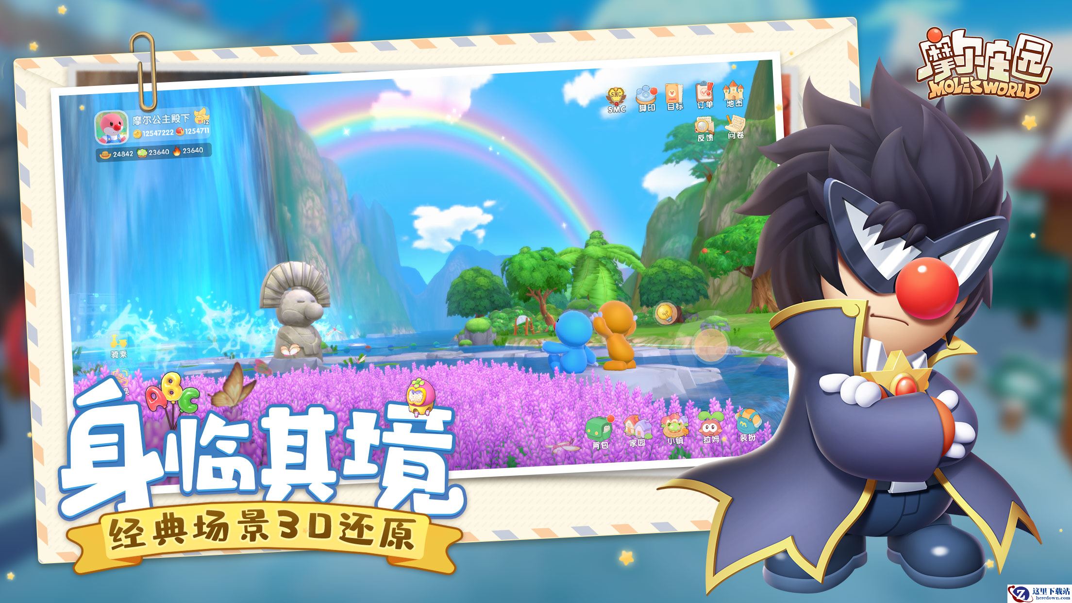 《摩尔庄园》手游全面升级为3D世界,将摩尔城堡、摩尔拉雅雪山、淘淘乐街、浆果丛林等经典场景以更立体、真实的形象呈现,摩尔们可以畅享不同地形的互动乐趣,进行滑雪,游泳,骑车等运动,身临其境地沉浸摩尔世界。
