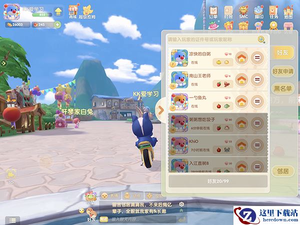 好友图标就在界面下方的对话框旁边,点击可以查看好友列表,浏览好友的特产和拜访好友家园。