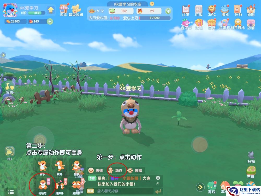 这是咕咕套装的专属变身动作,小摩尔只需要穿上整套服装,在打开动作界面,点击专属动作就可以变身鸽子啦~