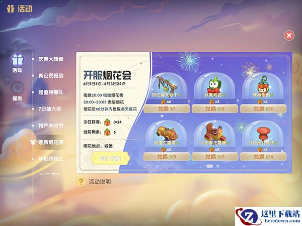 烟花秀结束后,会在庄园地图随机掉落的限定道具“满天星花”和“开园礼炮”,小摩尔们可以去拾取这些道具,然后前往烟花会兑换界面,使用活动道具“满天星花”兑换秋千等家具奖励哦。