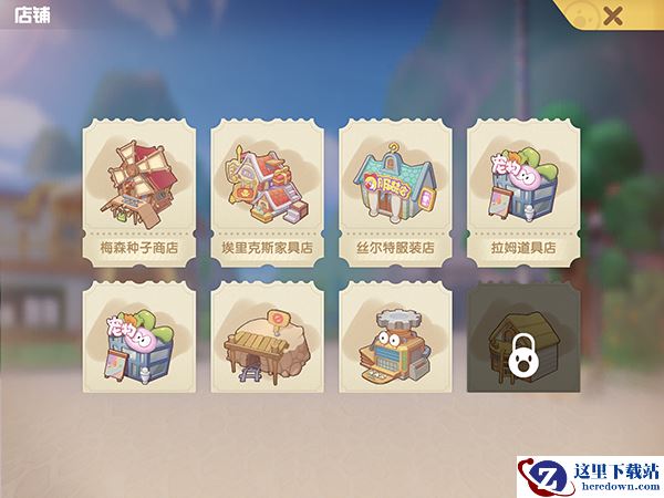 手游有设计快捷商店的通道,小摩尔点击右上角店铺,庄园所有的商店都在里面,有想购买的物品直接在里面买即可,不必特地跑一趟。